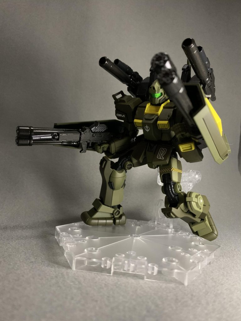 今回は特に手の込んだ事はせず簡単に作ろうって事で、陸戦型をベースにマドロックのバックパックのキャノンや両脚のスラスターユニット、両腕の内蔵式グレネードランチャー?を移植。