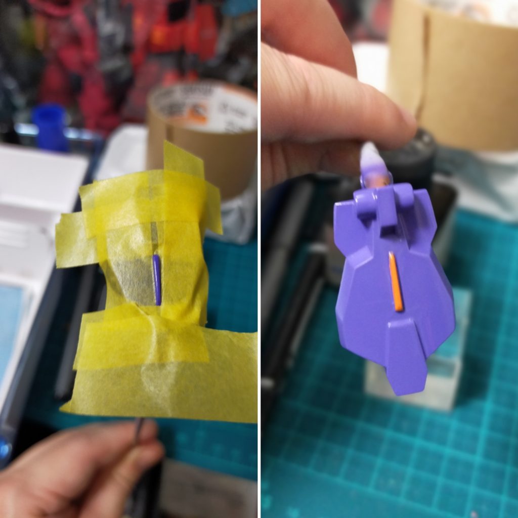 ・腰部の凸モールドは外装の紫を塗装してからマスキングで塗り分け