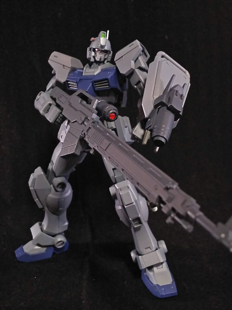GM/GMのボディーにEz-SRで余ったヘッドパーツを乗せてみたところ、思いの外いい感じだったので、スナイパーではなく、マークスマン的な役割の機体をと思い、余剰パーツの寄せ集めで製作してみました。