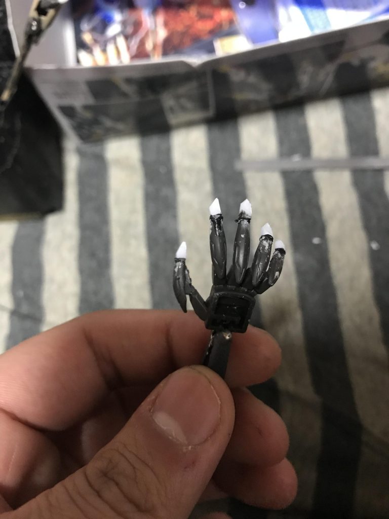 爪はキットを削り平らにしてからプラ棒を貼り付けて延長、シャープ化を行いました。