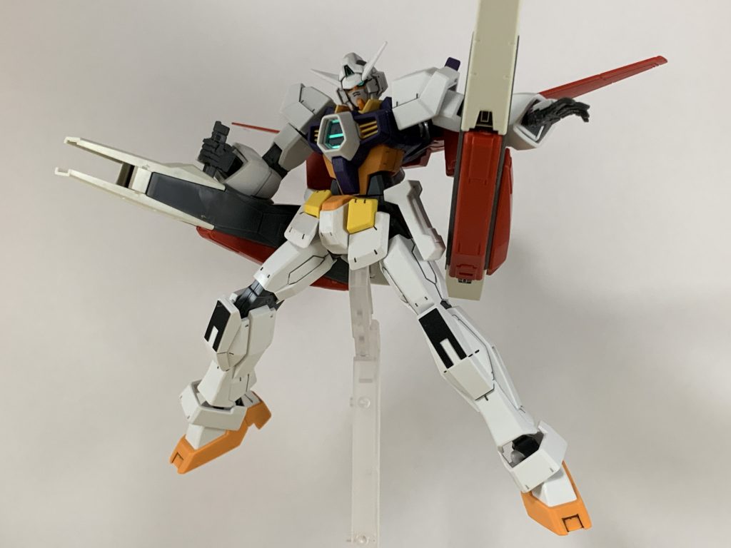 ガンダムAGE-1をマグナム化するにあたり、AGE大好きのキョウヤならスパローやレイザーのように大質量武装を用いた慣性運動による高速変態軌道をやりたがるんじゃないか、と考えました。加えてアスノ家の伝説のガンダムに倣って大剣も装備させてもいいかなと思い30mmから流用(後のトライスラッシュブレイドに繋がるイメージ)。