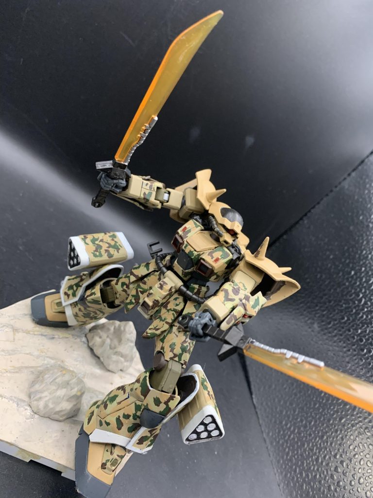 ゲリラ戦用ぽい機体だから、迷彩が似合いますね。