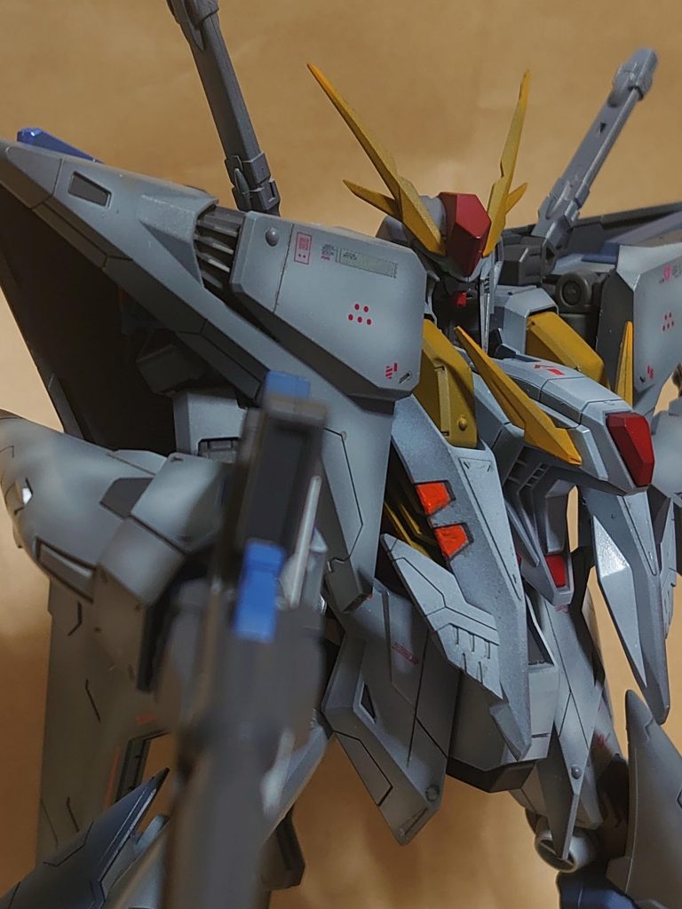 アンテナや足のウイング部分等エッジ出しをしましたが、肩のバインダーや背部のウイングなどは丸さを残し、合わせた時にメリハリが出れば…と思いましたがこれはあまりうまくはいきませんでした。