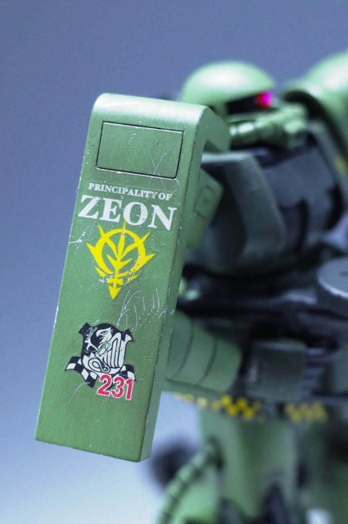 腰アーマーのチェック柄やジオン広告防衛部隊のマーキングまでしっかり再現されていてお見事です!
