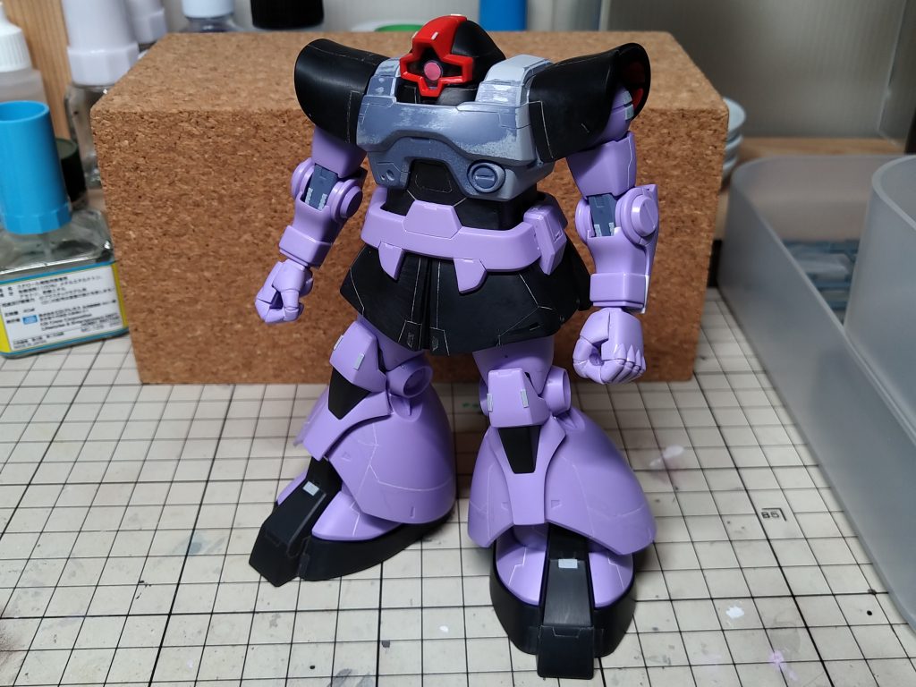 その他手を加えた点は腕の輪っかの形状を少し変更、バーニア大型化、各部軽くディテールアップ。ヒートサーベルはクリアオレンジのランナーから。仕上げのウェザリングを足元強めにかけました。