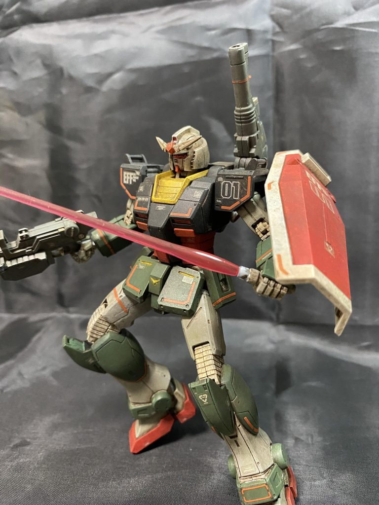 局地型ガンダムをリアルタイプカラーで製作しました。シールドと足首は違うキットから、ラインデカール等はそのまま局地型ガンダムのを使って製作しました。