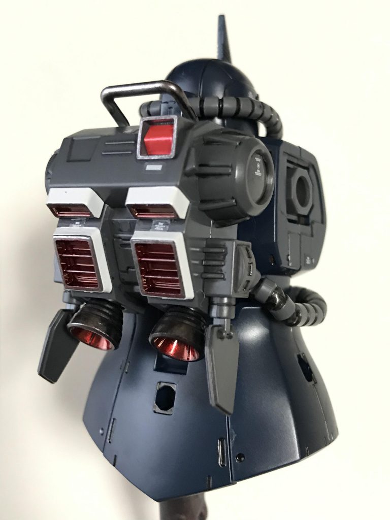 対艦ライフルは他のオリジン系のザクにも付いてきますが、実は初めて組みました(いつも組まずランナーはジャンク箱に)。この機体にこそ合う武器だと思いました。、