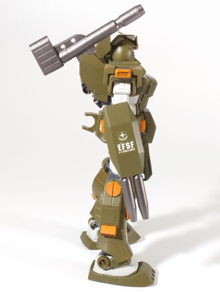 プロポーションは素体のHGUCリヴァイブガンダムがベースで、フルアーマーにしては細いのが気に入らなかったのですが、ジムストライカーの胴体を使うことで好みの太さにする事ができました