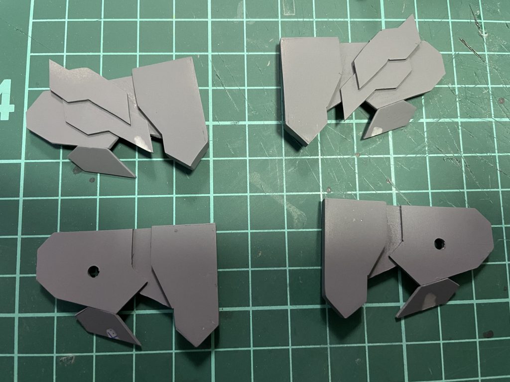 大型シールドですが最初は透明プラ板で作っていたのですが接着とかヤスリとかでやらかしたので普通のプラ板で作り直しました。