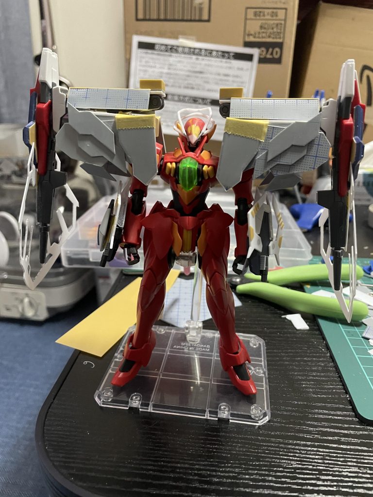 今回プラ板で自作したパーツがかなり目立つ場所かつ量も多かったので粗が目出ちました。塗装もなかなか汚いのがわかります。めちゃくちゃ課題が見えた感じです。