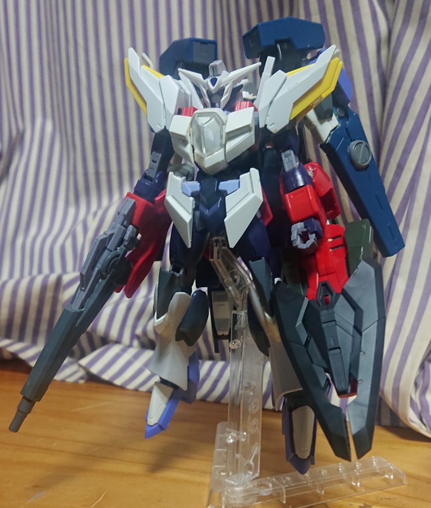 基本的にリボーンズガンダムのパーツを切り貼りしてますが、肩はアニマリゼのアーマー、脚はフェイクニューの物を改造。