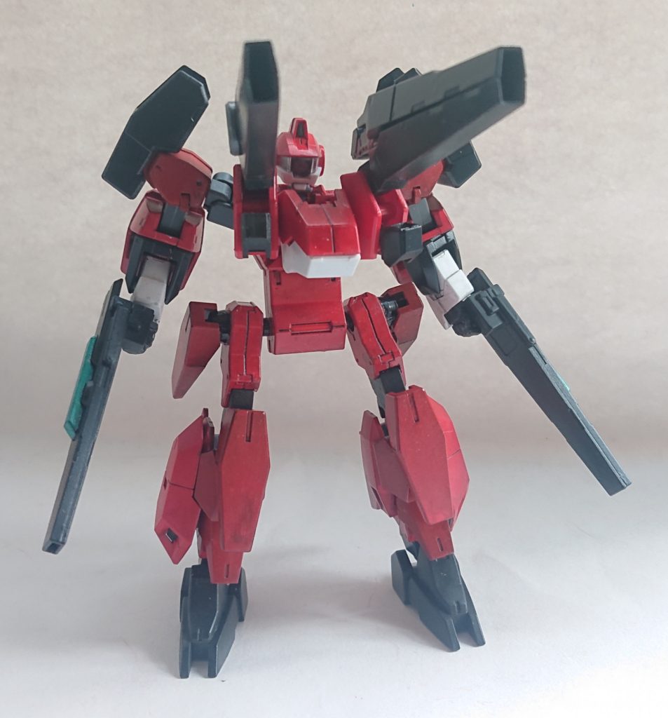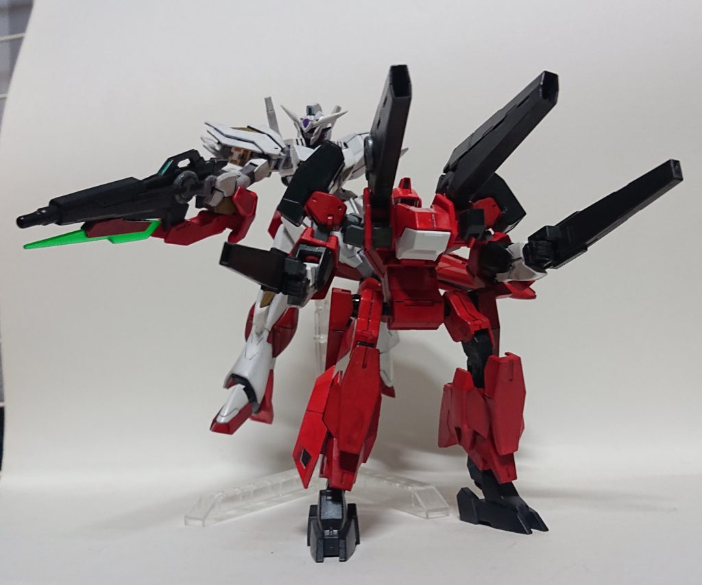 リボーンズガンダムベースですがマイスターのガンダムの特徴的な武装を装備し、1人V作戦ならぬ1人ソレスタルビーイングな仕様に改造。