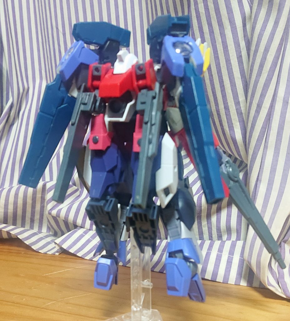 メイン武装であるGNバスターキャノンは背中のGNキャノンの腕と武装のGNキャノン(ややこしい)を合体させてます。