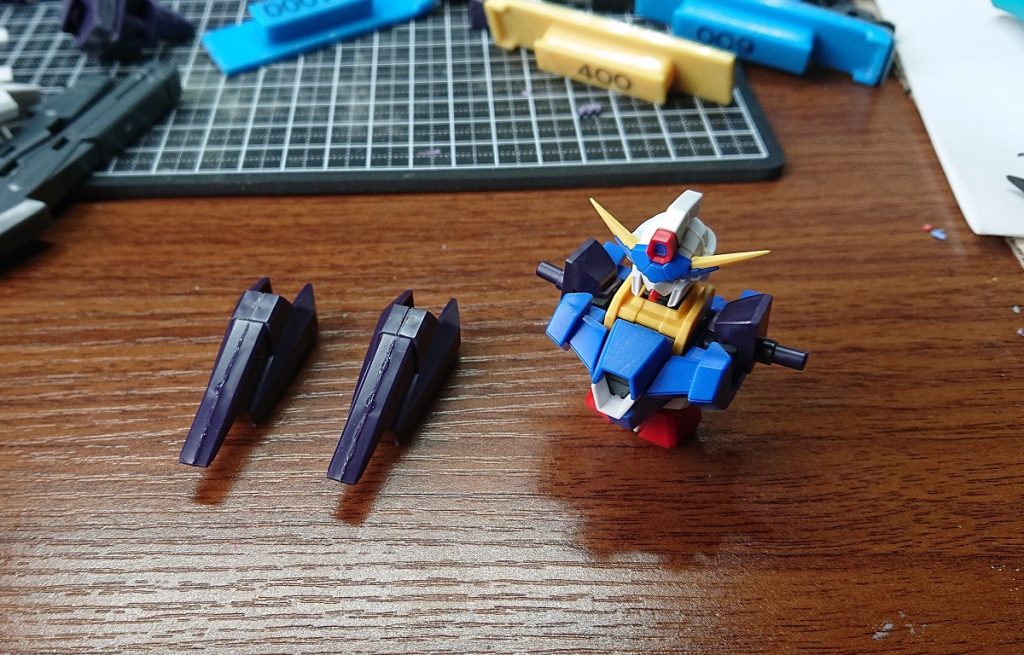 加工部分はアンテナシャープ化し、コアファイター以外の目立つ部分のみ合わせ目を消しながら表面処理。プロポーション変更はしていません。