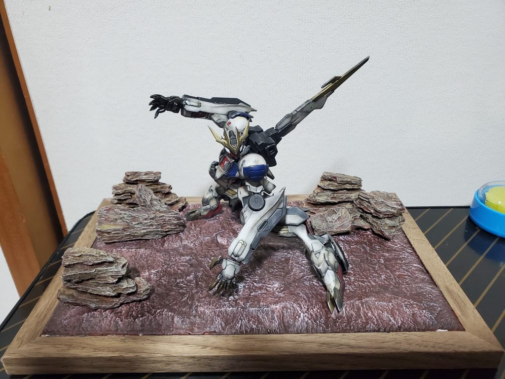 ちゃぶ台作成6作目です。HGバルバトスルプスレクスを成形色生かしで激しくウェザリングしてみました。初挑戦のジオラマもそこそこに。