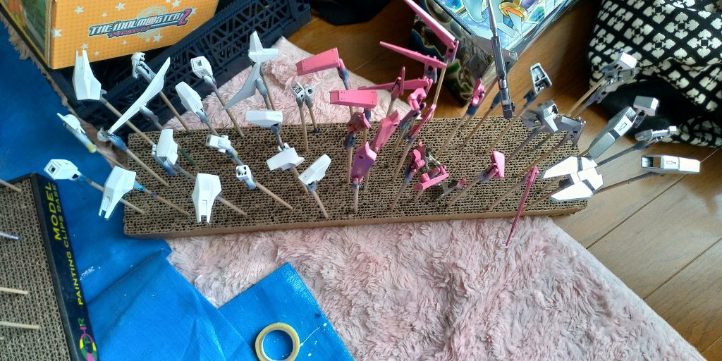 待つのが死ぬ程苦手なので乾く前に組み立てして、塗料が色んなパーツに移ってウワァァァァしてます。