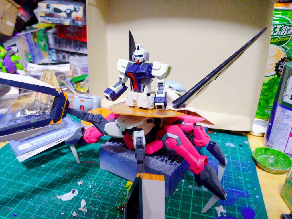 ゲルズゲーって上半身がストライクダガーで下半身が多脚型ユニットになっているモビルアーマーですね?。それを立体化する想像力と技術力は中々興味深いところです。ダガーLをベースにして他のキットからの流用パーツ選びもかなり慎重に選んだうえで作られたと言っても過言ではないのでは?と思います。