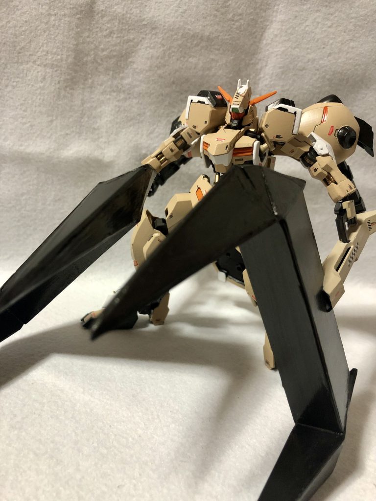 グシオンリベイクは鉄血キットの中では色分けが余りされてないですから、塗装のやりがいがありますね。セールカラーにオレンジを少々混ぜて筆塗りです。デカールも貼りました