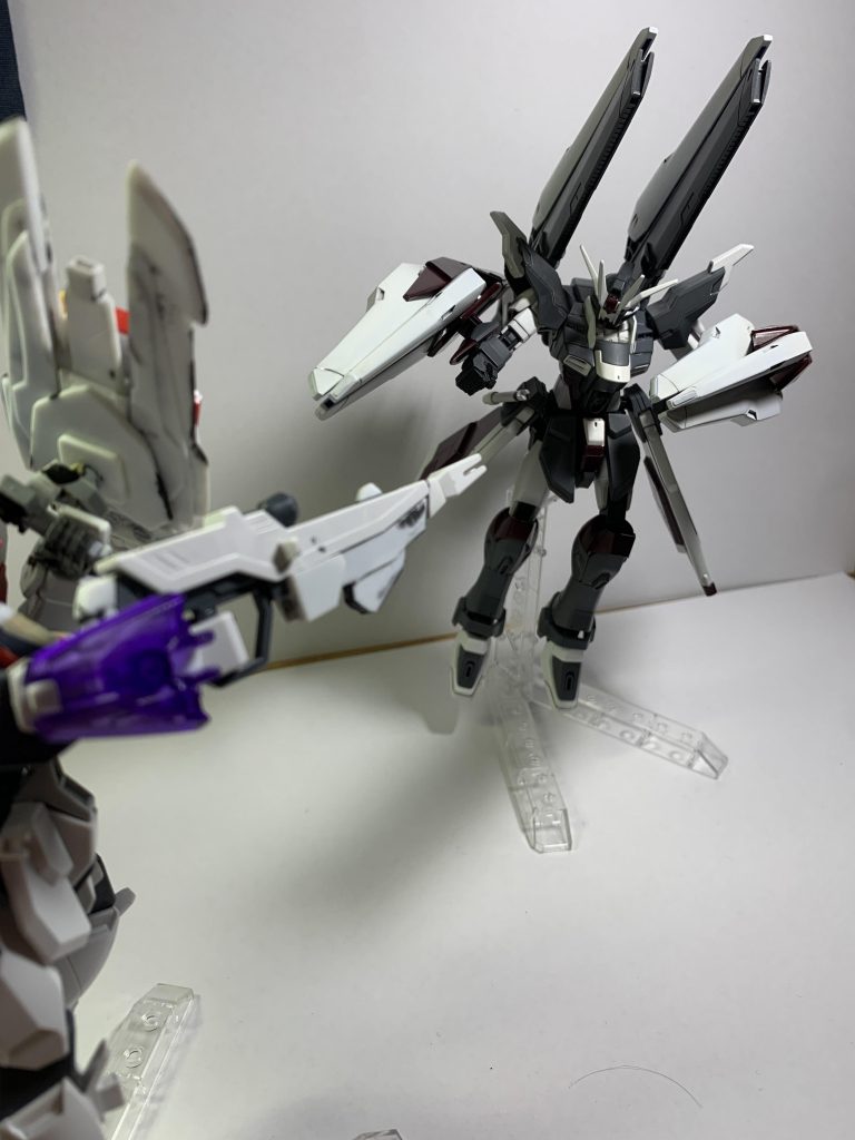 現在制作中のフリーダムに一部アメストフリのパーツを使い、余った部分がもったいないのでどうするかと考えて、積みにあったラヴファントムと混ぜよう!ということになりました。ラヴファントムは近接特化ということでこの機体は高火力および遠距離での戦闘を得意とするように仕上げようと思いました!ちなみに制作中のフリーダムのライバル機という設定です。どうぞご覧下さい。