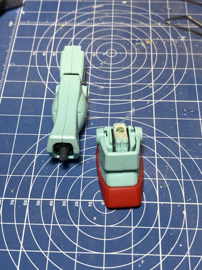 ジムを製作するにあたり初めて知ったのですが、ビームスプレーガンって結構高性能な設定なんですね。ビームライフルより威力は低いが弾数が多くて連射が効くから一般兵にも扱いやすいとか。そんな訳で武装はビームスプレーガンのままです(笑)