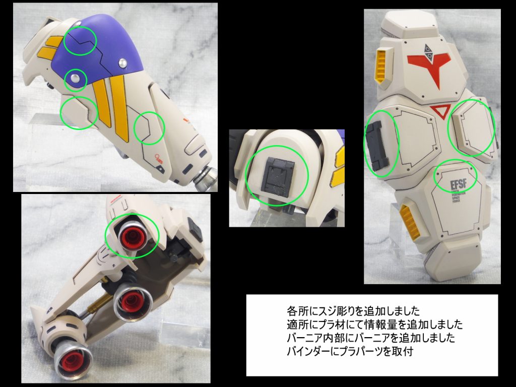 太ももをプラ板にて1mm幅増ししました。 各所にスジ彫りの追…