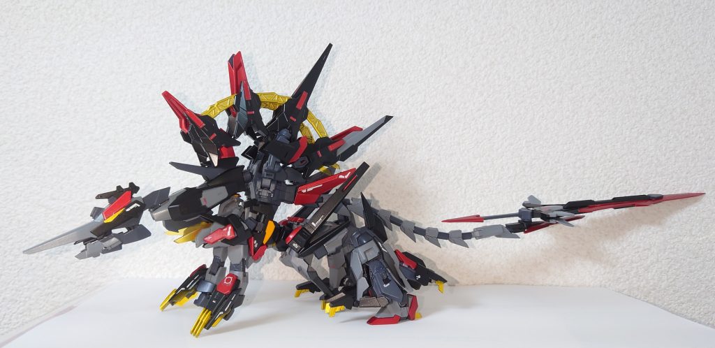 元々近接特化の機体だが、外側に展開したバックパックのビーム刃や尻尾に剣を装備したことでリーチがかなり伸びており、一度近付かれればもう逃げることはできない。