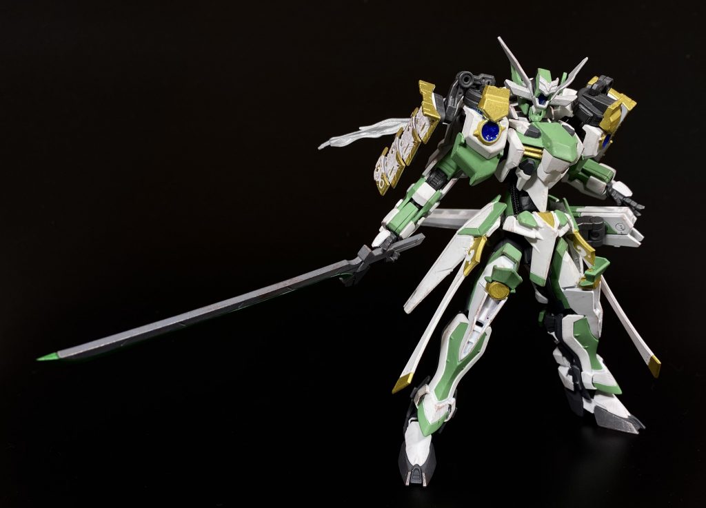グシオンリベイクの胴体をベースにフルシティの腕、フラウロスの頭、ロードアストレイダブルリベイクの脚を組み合わせ、戦国アストレイのパーツで武者感を追加しています。