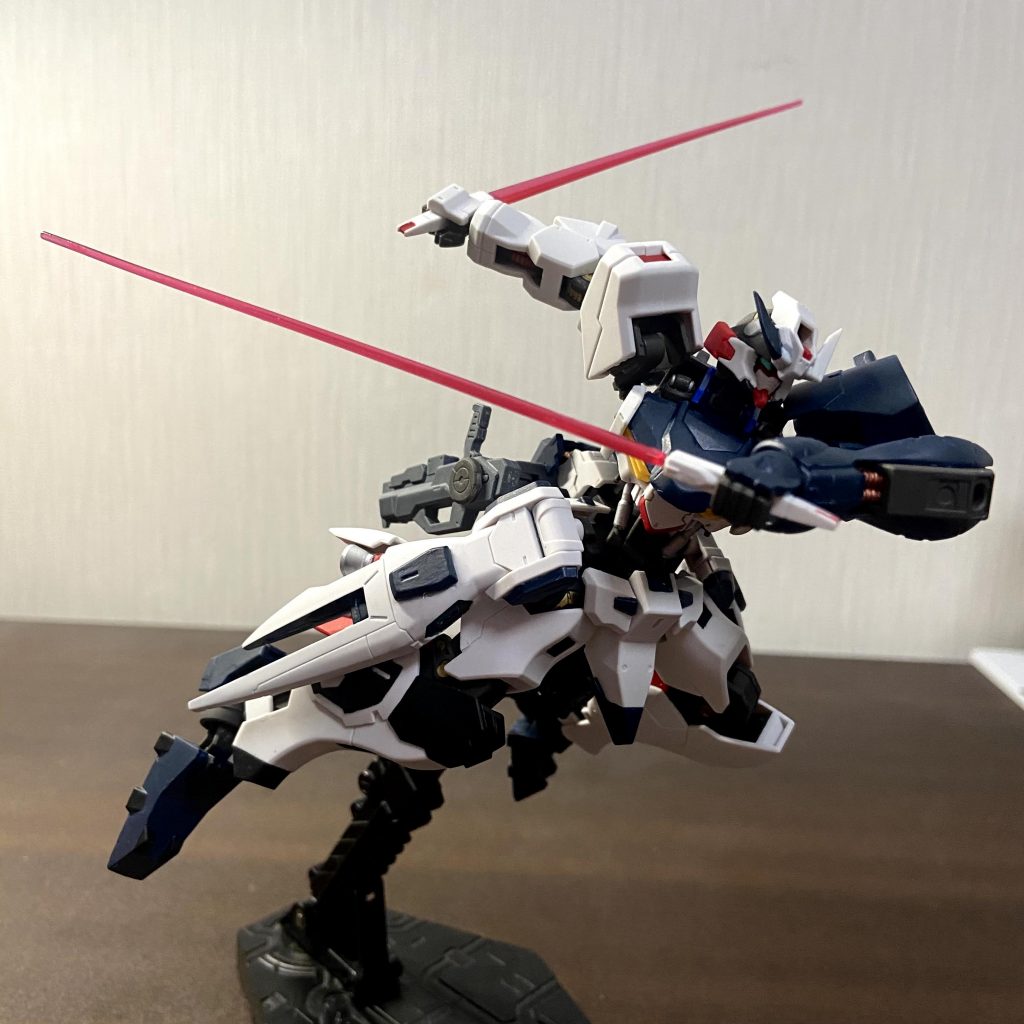 HGアスタロトをベースにガンプラバトル用の機体を制作しました。名前のシュトラールはドイツ語で光線という意味で、ビーム主体で戦うアスタロトの改造機です。