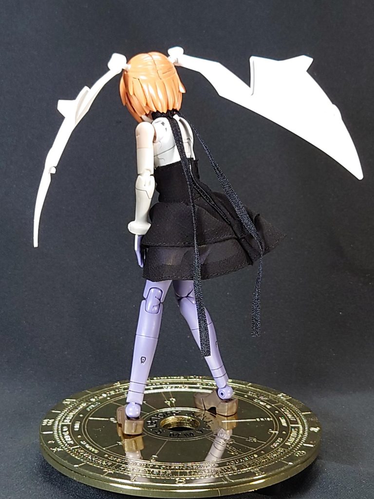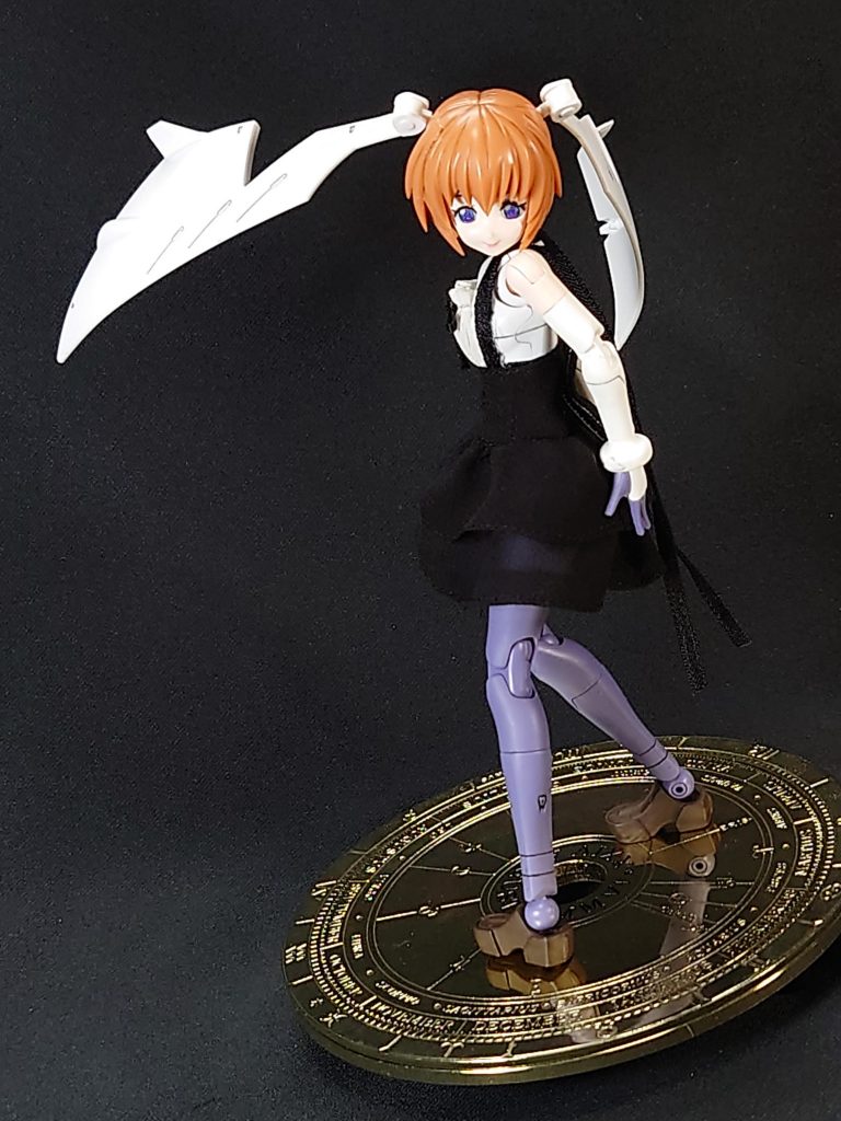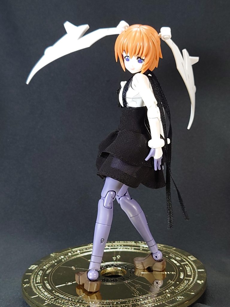 目は筆塗りの後クリアーやレジンではなく、お手軽にセロハンテープをカットして貼ってます。ヘアーはコトブキヤのガールズ系の余剰パーツですが、ボールジョイントの径がピッタリだったので、サラのスカートアーマーをそのままツインテールにしました。