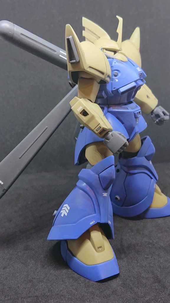 ゲルググMシーマカスタムです。前回の再販でゲットしてしばらく積んでいましたが、遂に作成しました。HGUC初期のキットですが、非常にプロポーションが良いです。