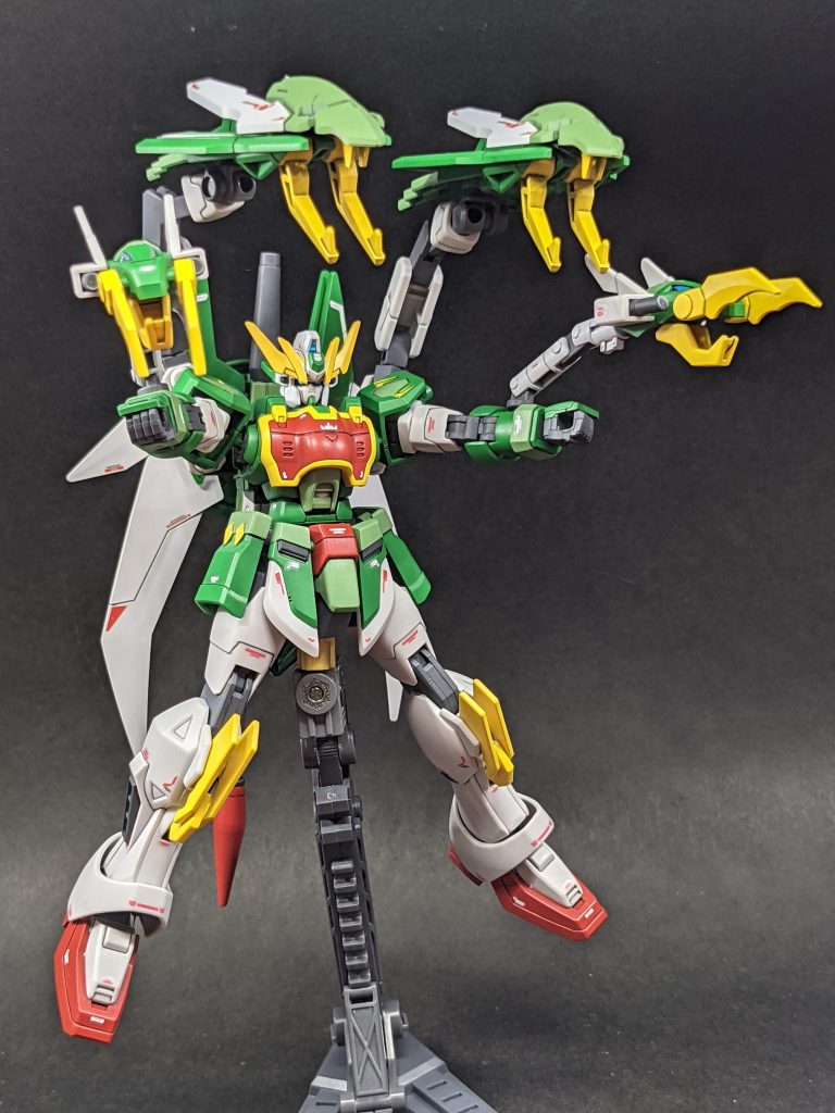 30MMのドラゴンヘッドを見た時にドラゴンハングにしたろ!という事でアルトロンにミキシング。ミキシングといってもくっ付けただけですが、笑。ジーエンのツノがイマイチだったのでユーラヴェンガンダムのツノに変更してイカついドラゴン感を出しました