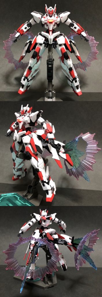 ですが、ヒロイックな機体にしたかったので白+赤に落ち着き、この配色になりました。