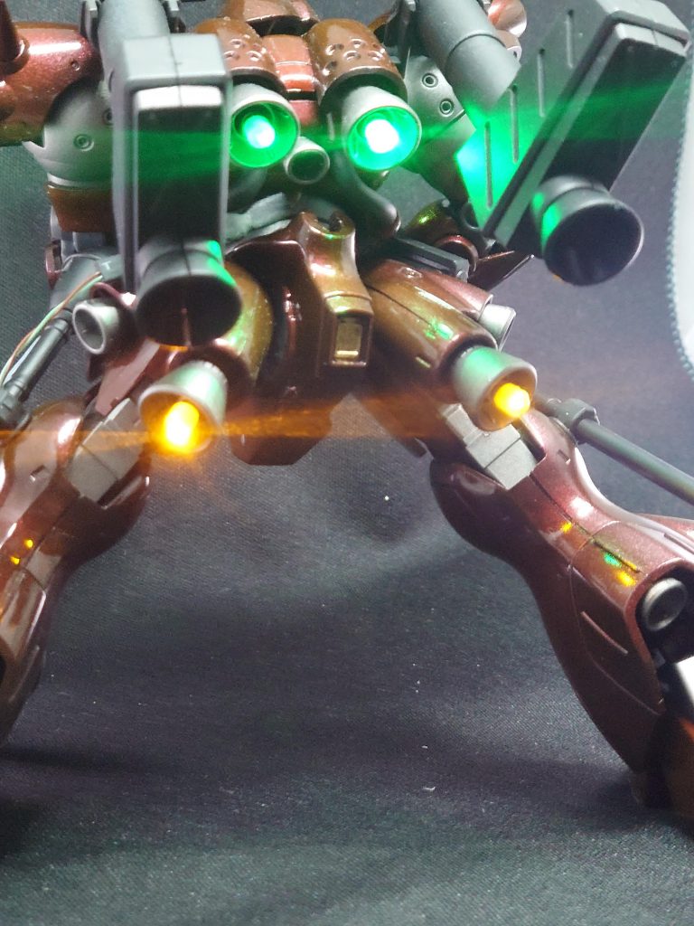 今回はHGUCケンプファーをキャンディ塗装し、電飾加工で光るようにしました。