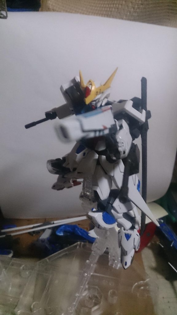 写真では分かりずらいですが、リアアーマーに上のビームライフルを装備しています。