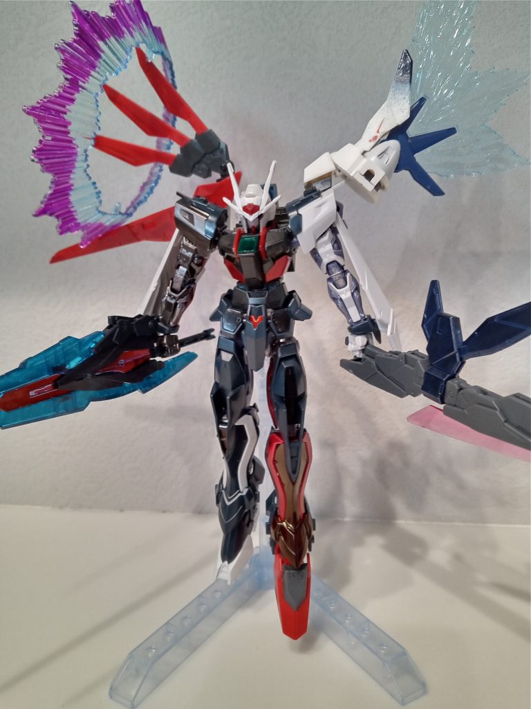 カレドヴルッフクロスオーバー×ダブルオーを考える中で2つのテーマを混在させる機体として作成しました!