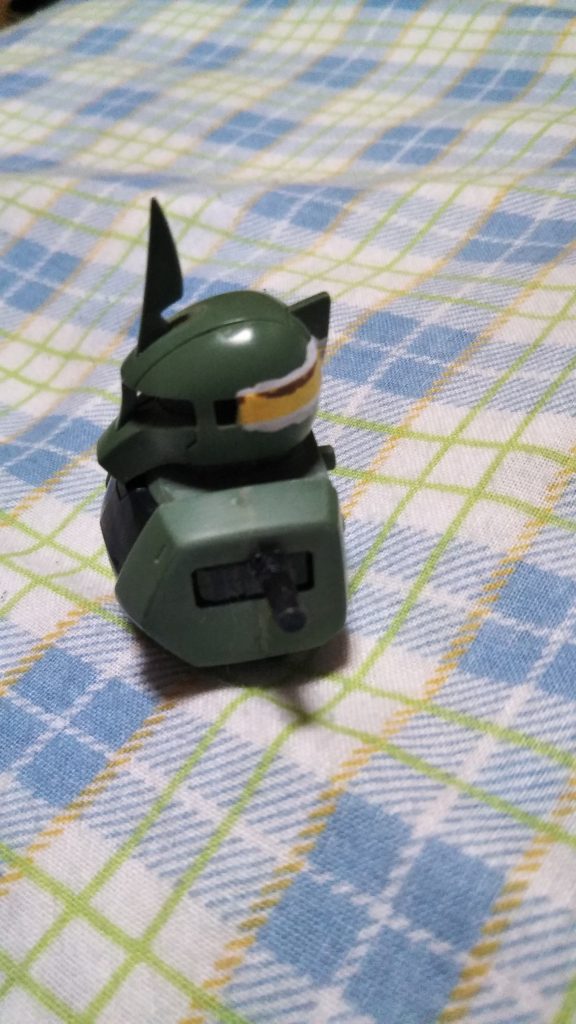 後頭部には、08小隊に登場するトップさんの旧型ザクのオマージュとして白いラインをマスキングして描き込みました。
