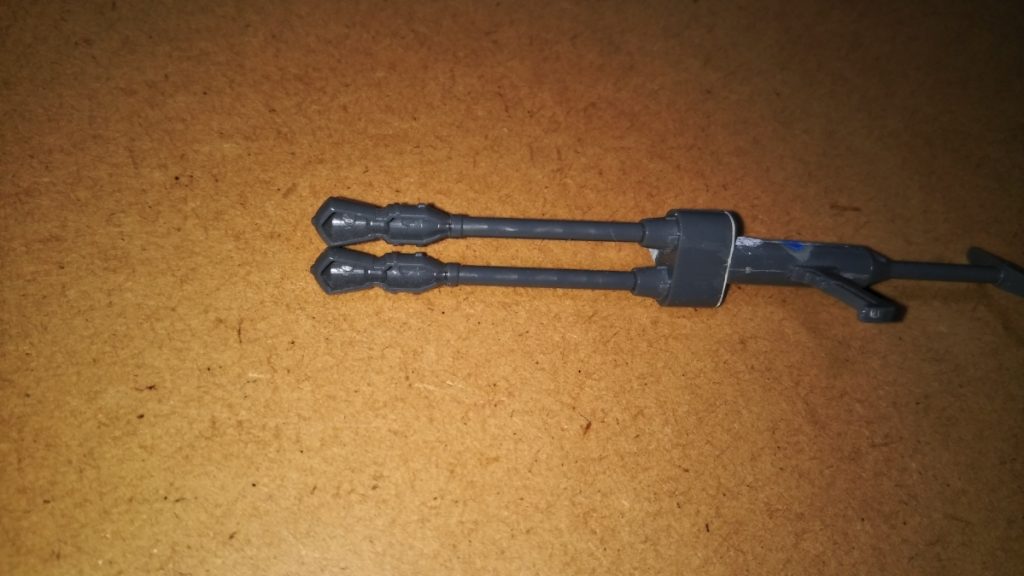 ガスランチャーはカスタマーズキャンペーンの、ハイザック・カスタム用ビームランチャーとコンパチになっているモノを加工して製作しました。