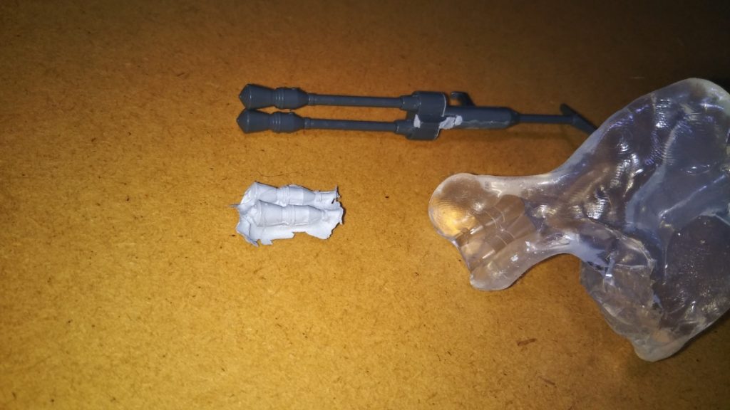 複製はそれなりにうまくいったのですが、パーツの裏側に張り付けてヤスリで成形している間にパテで作った部分が何度も欠けてしまい、その度にパテを盛っては削り直したのでかなり時間がかかりました・・・。