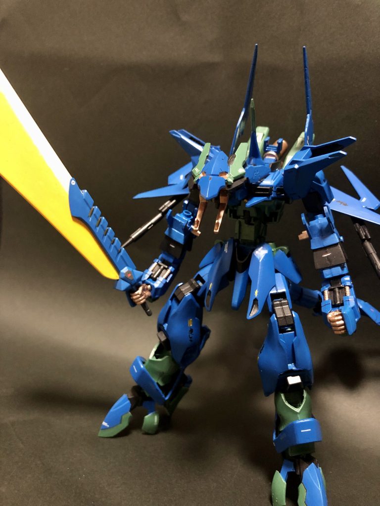 HGUCバウ改造、リュウジンです。バウといえば龍飛という字ですが、龍要素がもっとあってもいいんじゃないかという筆塗りライトカスタムをしてみました