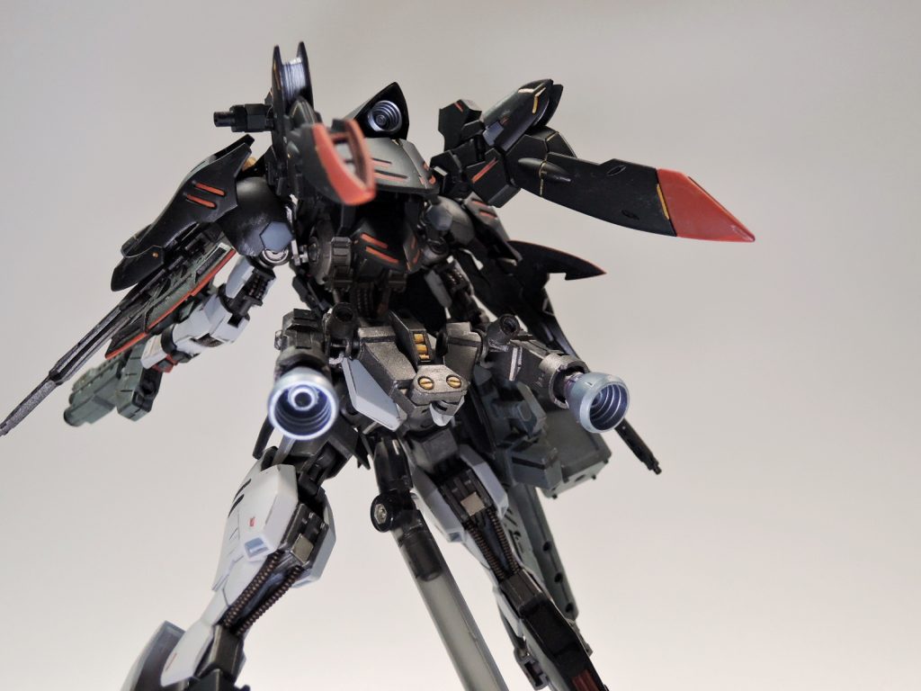 しかし機体重量が増加し機動力が失われたため素体の状態から強化を施し追加で推進器とプロペラントタンクを増設その結果乗り手の負担を考慮しないモンスターマシンとなってしまった。