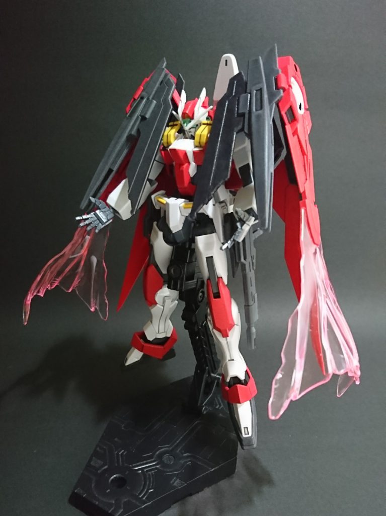 ありがとうございます!ダブルオーにはない変形やマント等、斬新さを求めて制作しました(*^_^*)