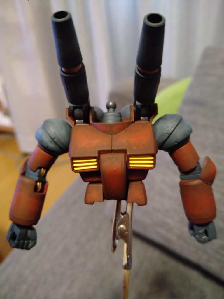 HGガンキャノンを筆塗りで迷彩柄塗装し、自衛隊風に仕上げまし…
