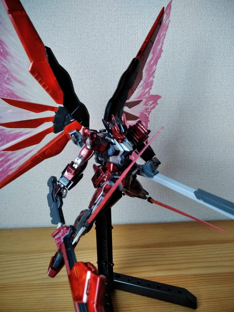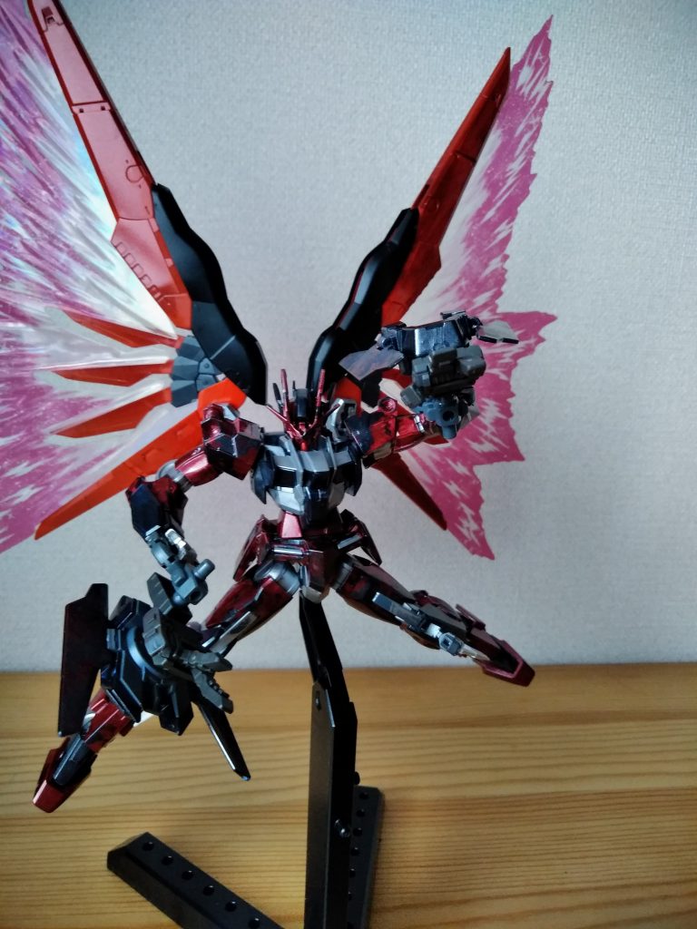 デスティニーの光の翼使いたい→デスティニーの悪魔っぽいイメージで作ろう→メタリックなレッドやブラックにしよう→ラップ塗装面白そうだからやってみよう