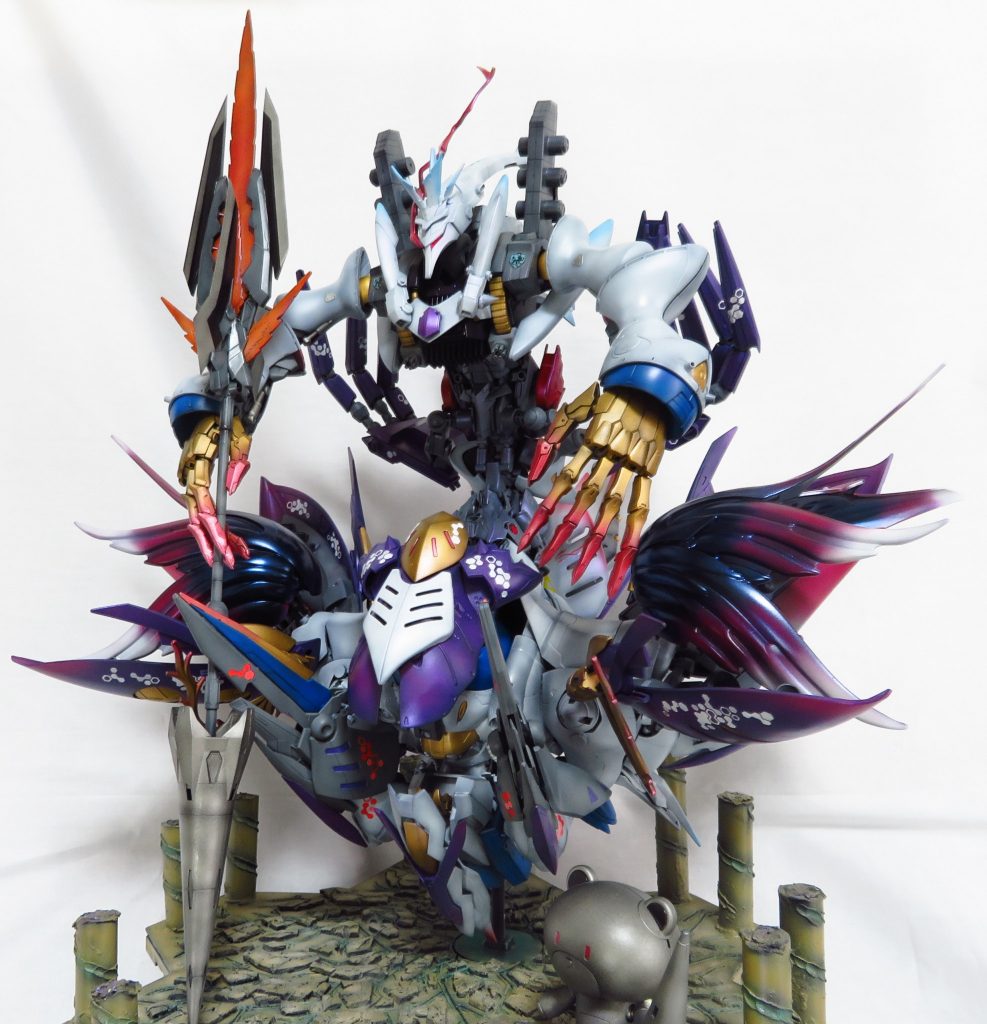 サラちゃんがGBNのラスボスだったらという仮設定で、モビルドールサラとキュベレイをミキシングしました。サラちゃんの可愛さとキュベレイの高貴さ、そして全体に迫力を兼ね備えた作品に仕上がったと思います。