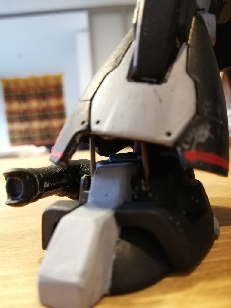塗装前です。足の先端ブロック部分もプラ板で2mmくらい延長。塗装はプロトタイプドムを参考にしてます。