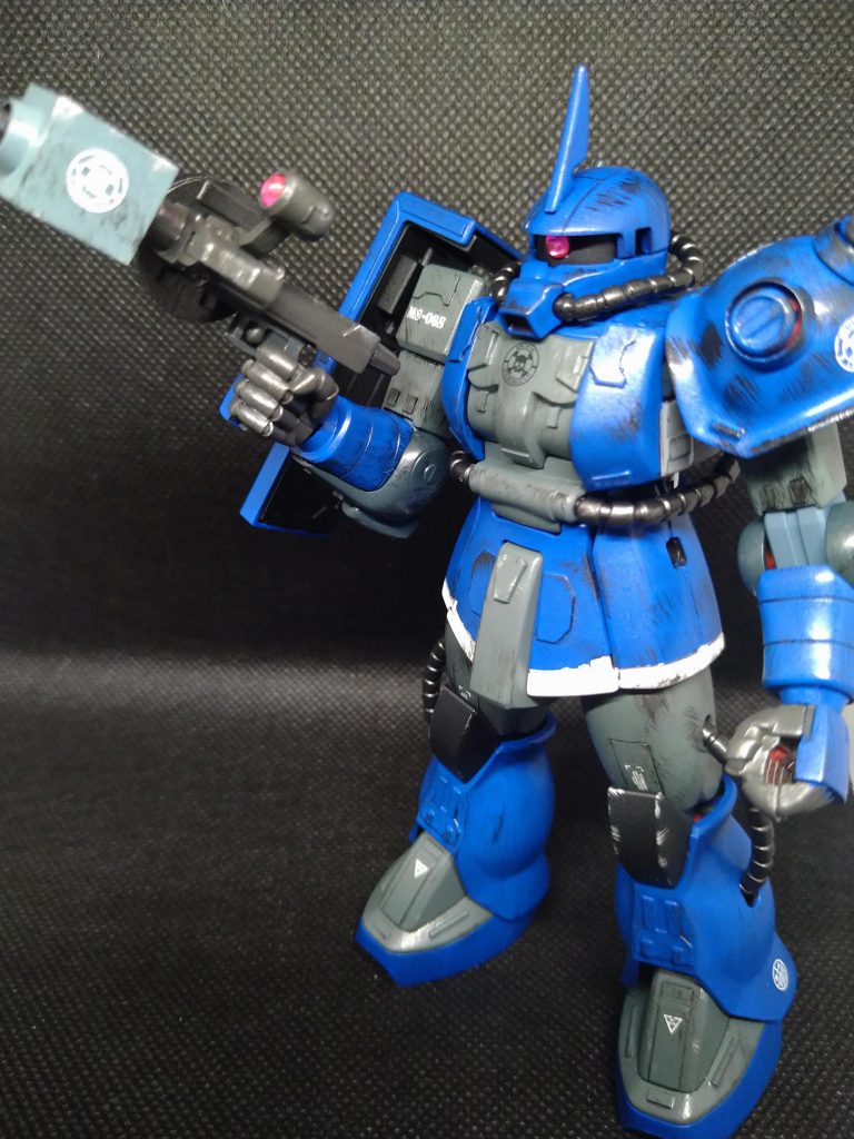 通常のザクⅡを作成しようと考えてたんですが、武器を"旧ザクマシンガン"にした時、所持している理由を考え、正規軍ではなく、傭兵が使用する機体で仕上げてみました。