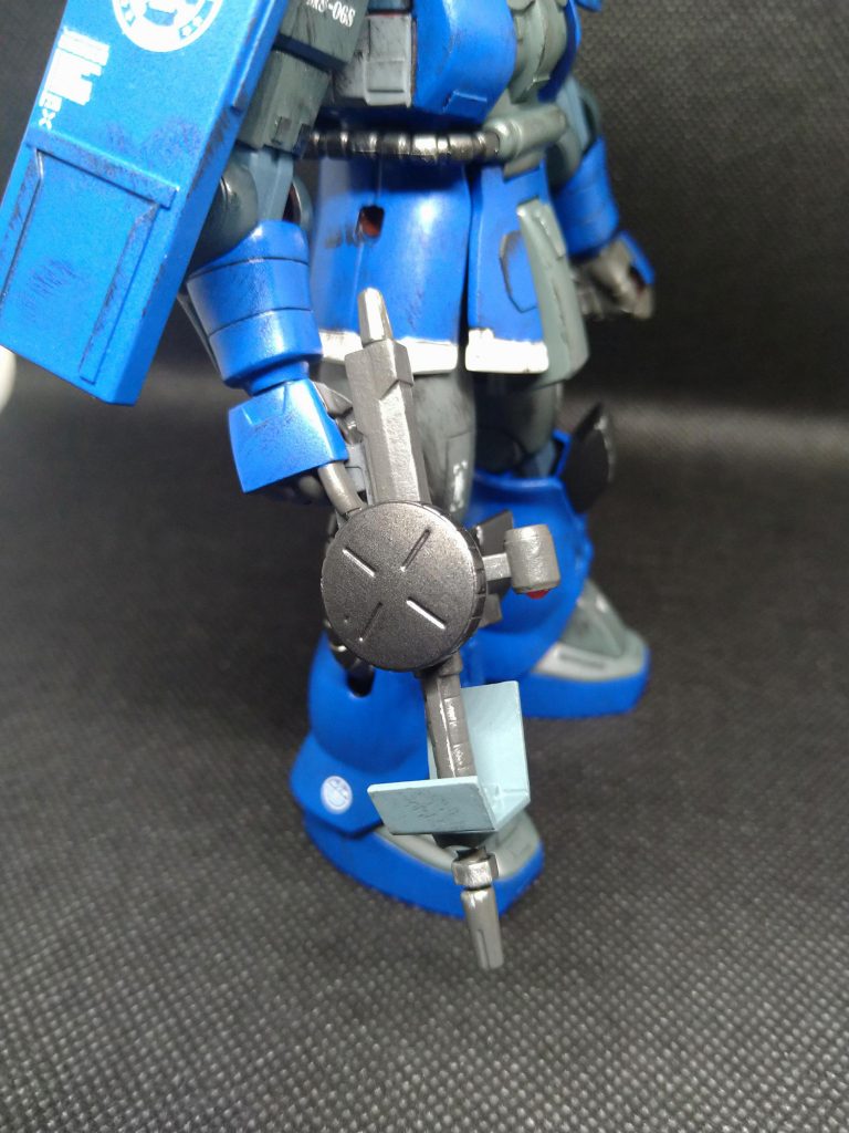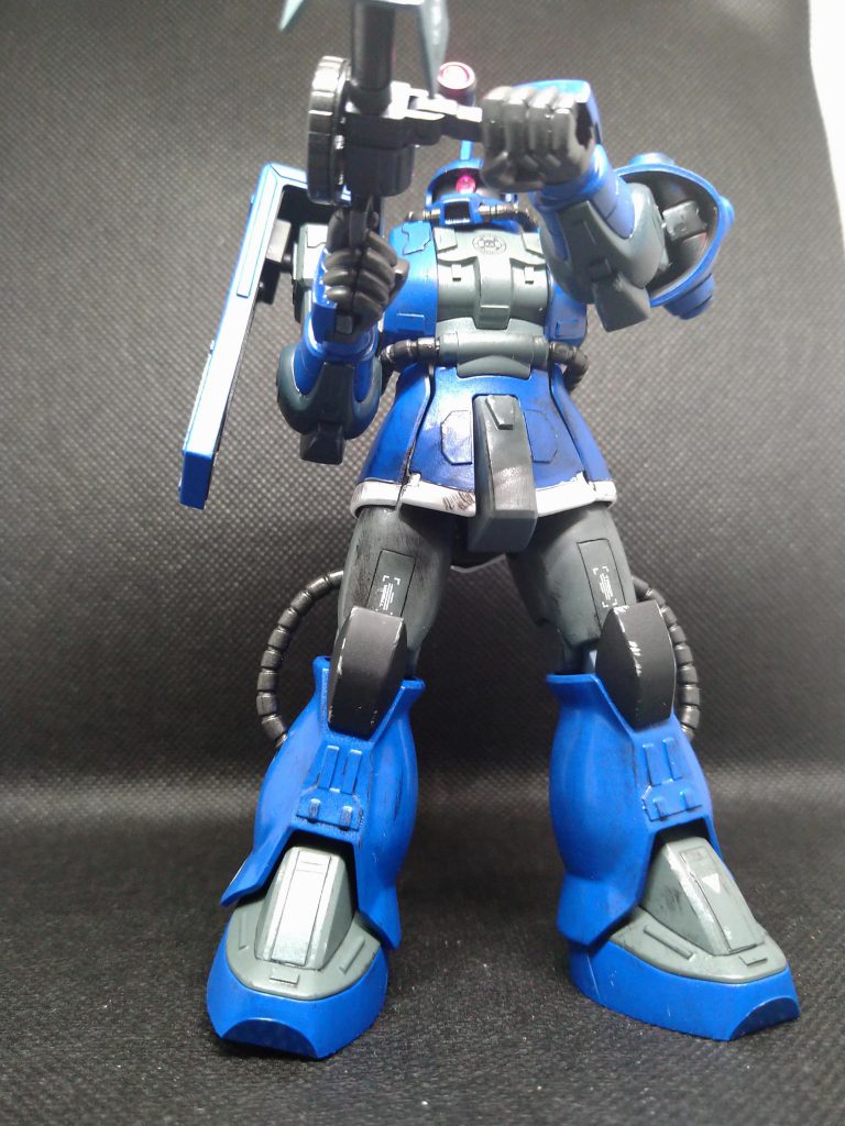 塗装は水性ホビーカラー。カラーリングはMSを使う傭兵っていったら、ガンダムseedの"サーペントテール"を思い浮かべ、イライジャ専用ジンを参考に、青系で塗装してみました。