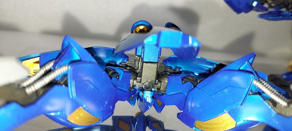 馬胴体部分に背中の阿修羅モジュールを収納してケンタウロスモジュールも馬形の機体として2体で合体、馬胴体部分に本体の足を後ろに向けて収納する様考えてましたが
