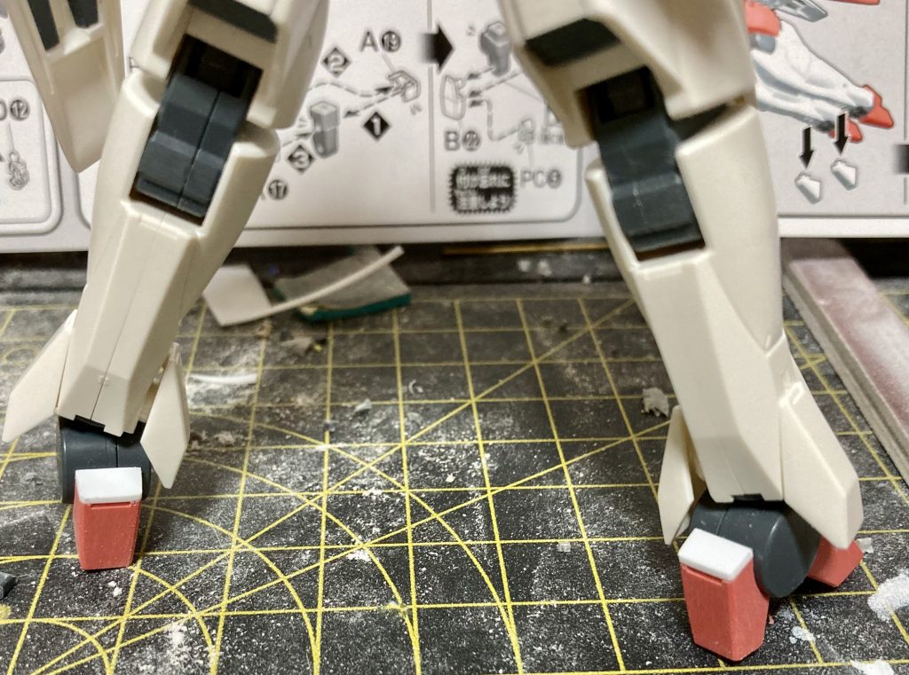 かかと上部はプラ板でフタをしてから、足が小さく感じたので縦に1mmほど延長してます。
