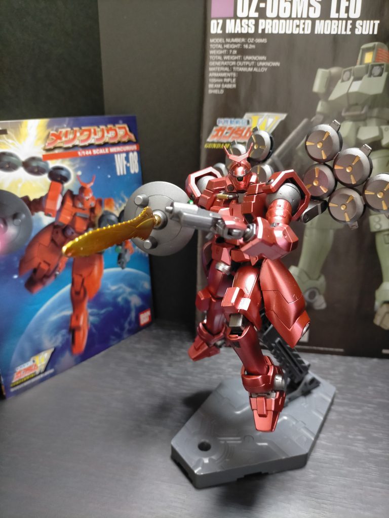 旧キットメリクリウスとリーオーのミキシングによる2022年1発目の作品になります(笑)初めての切った貼ったやリーオーとのミキシングによる関節の近代化改修、それに伴いスラスターの可動化、合わせ目消しとエッジ出し、既存モールド埋めと肉抜き穴埋め等を詰め込みすぎました(笑)